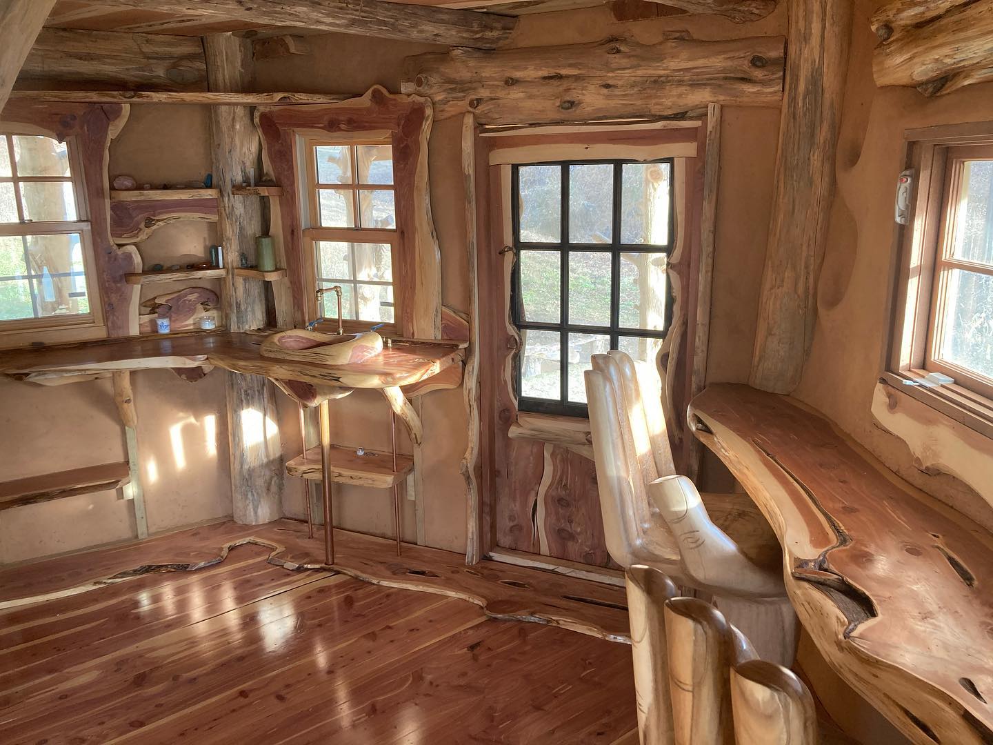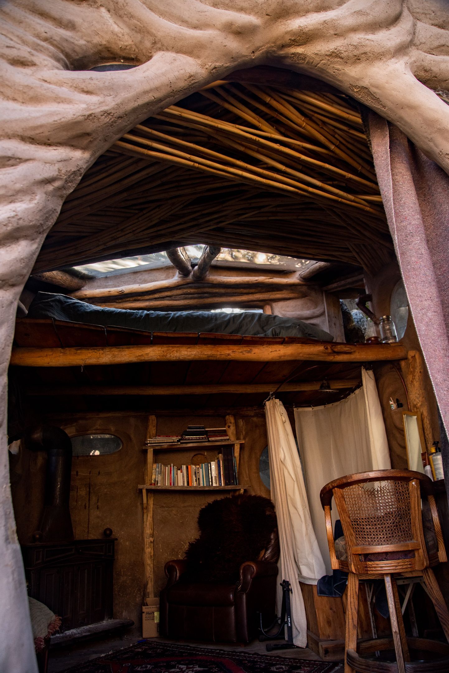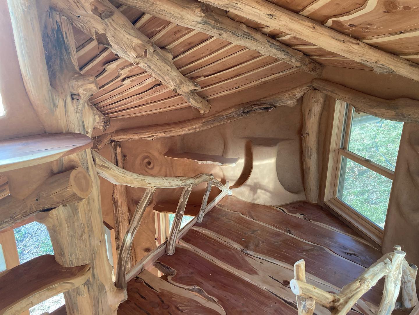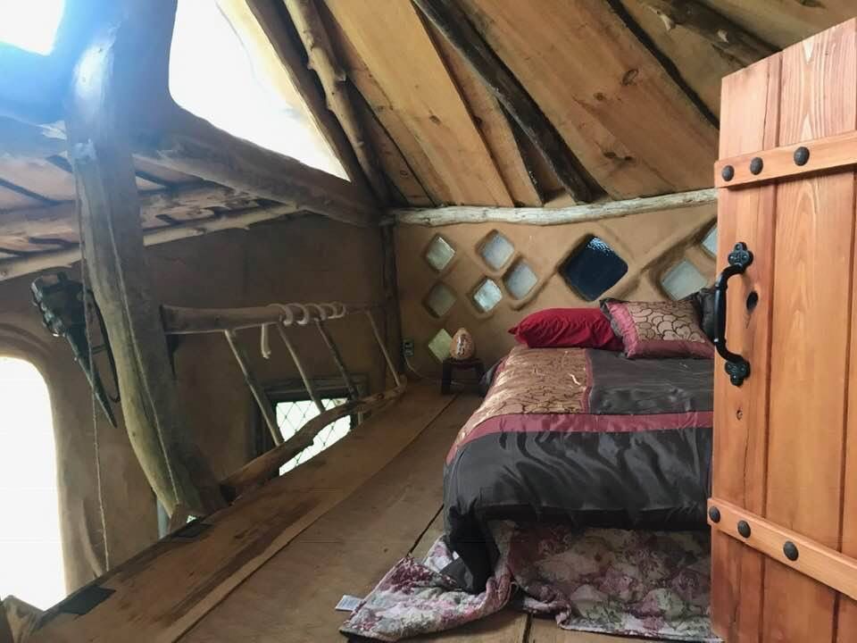 a unique artistic structure, custom built with natural materials, which provides a beautiful space for a human being to feel at home in a womblike state of wonder and protection.