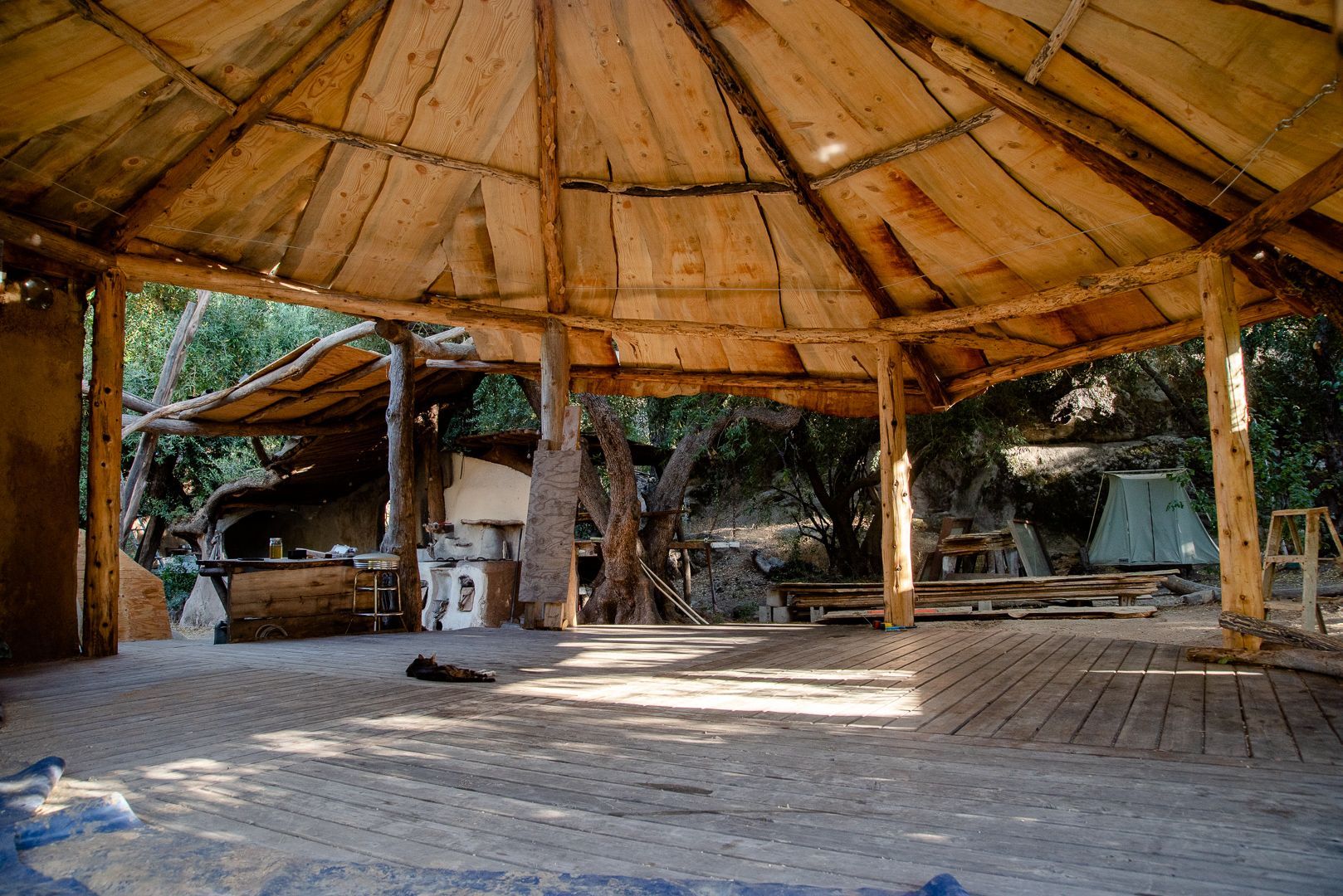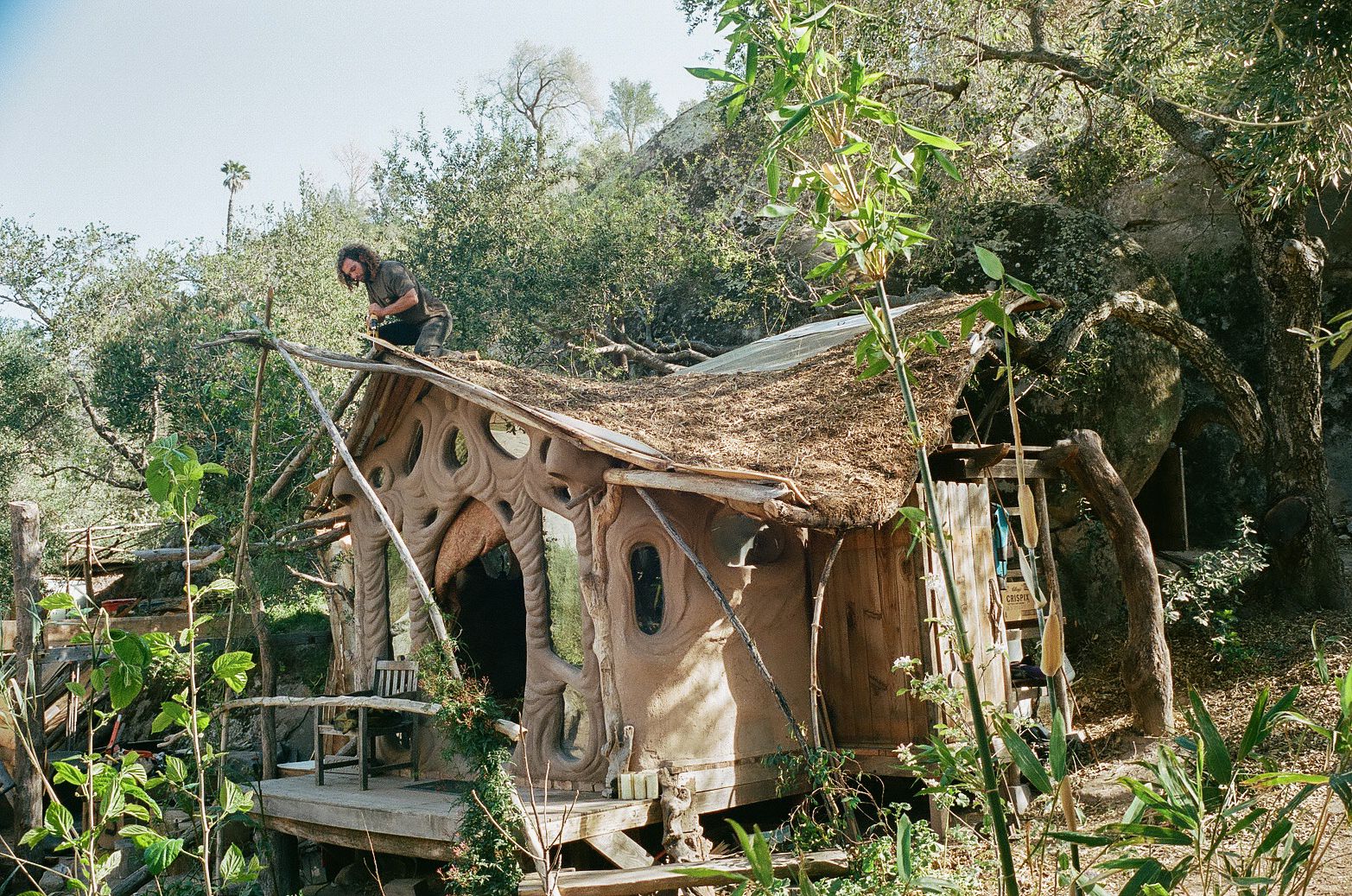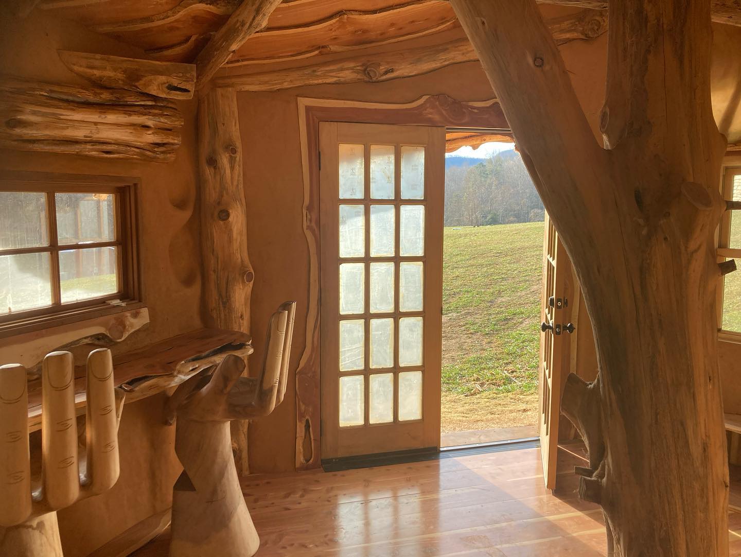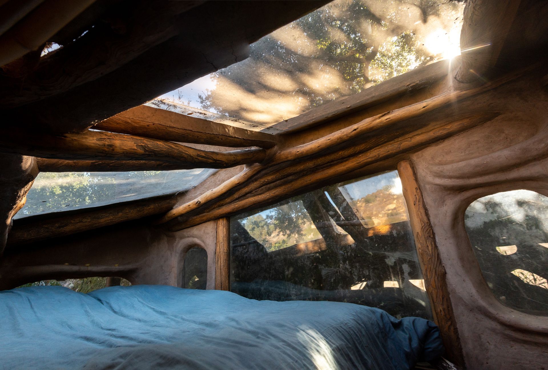 a unique artistic structure, custom built with natural materials, which provides a beautiful space for a human being to feel at home in a womblike state of wonder and protection.