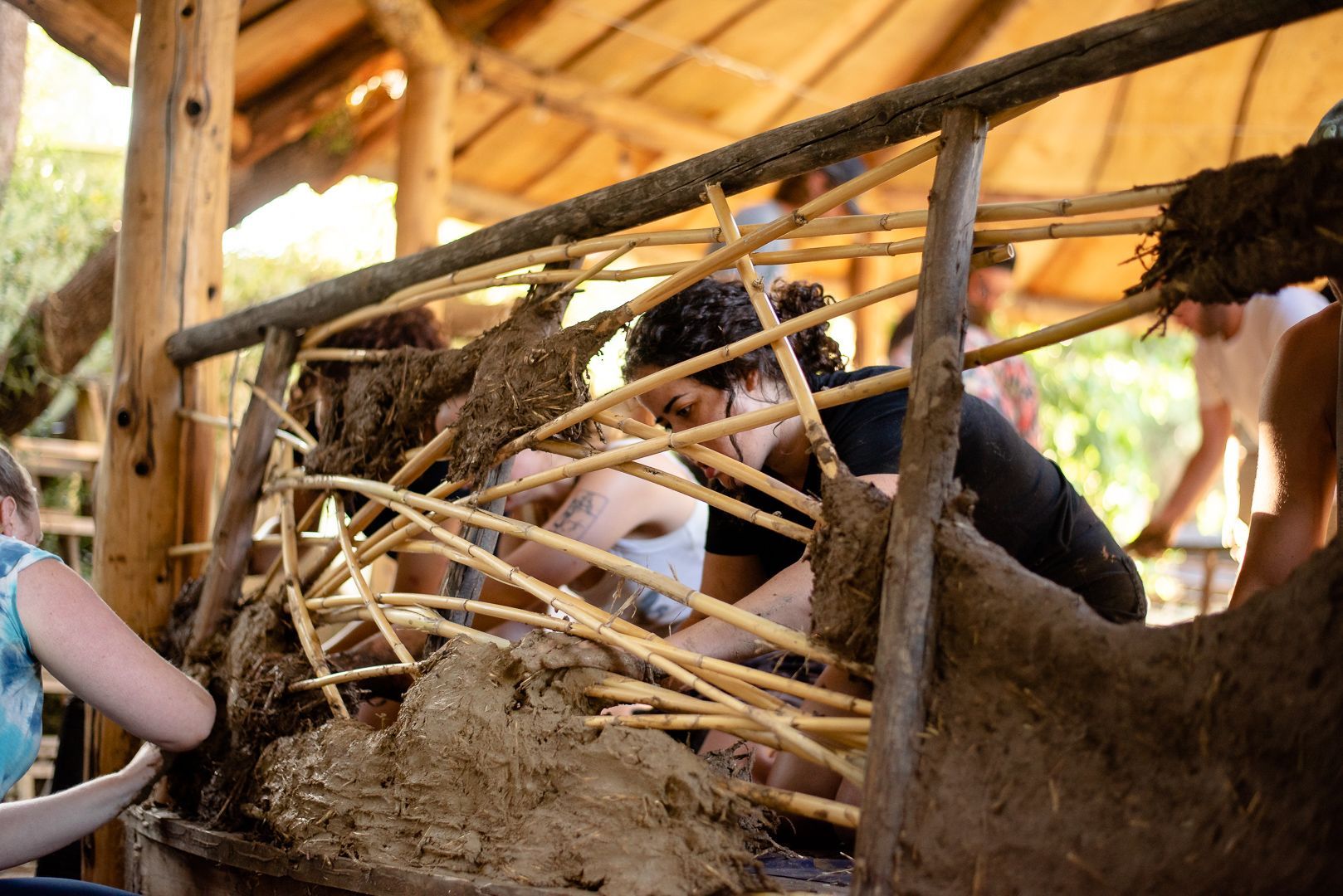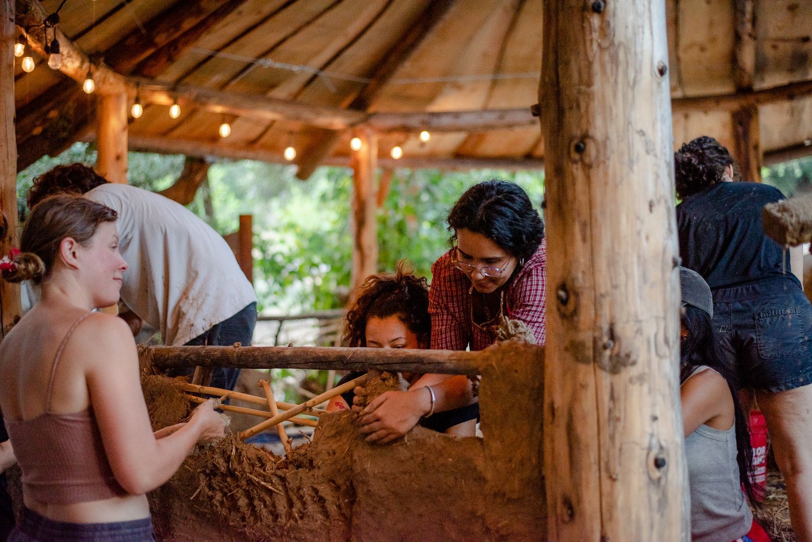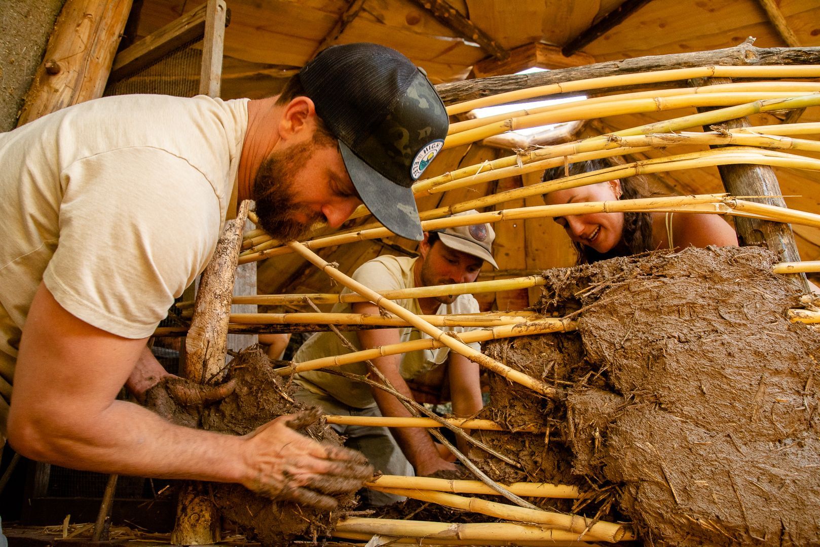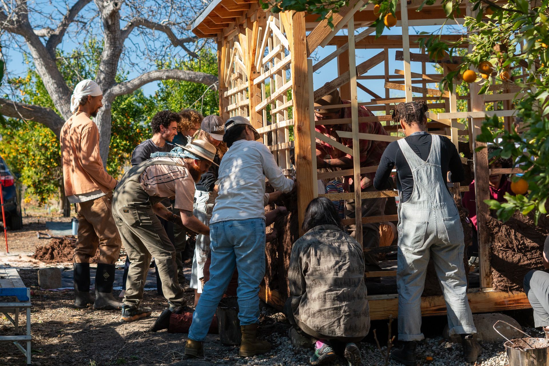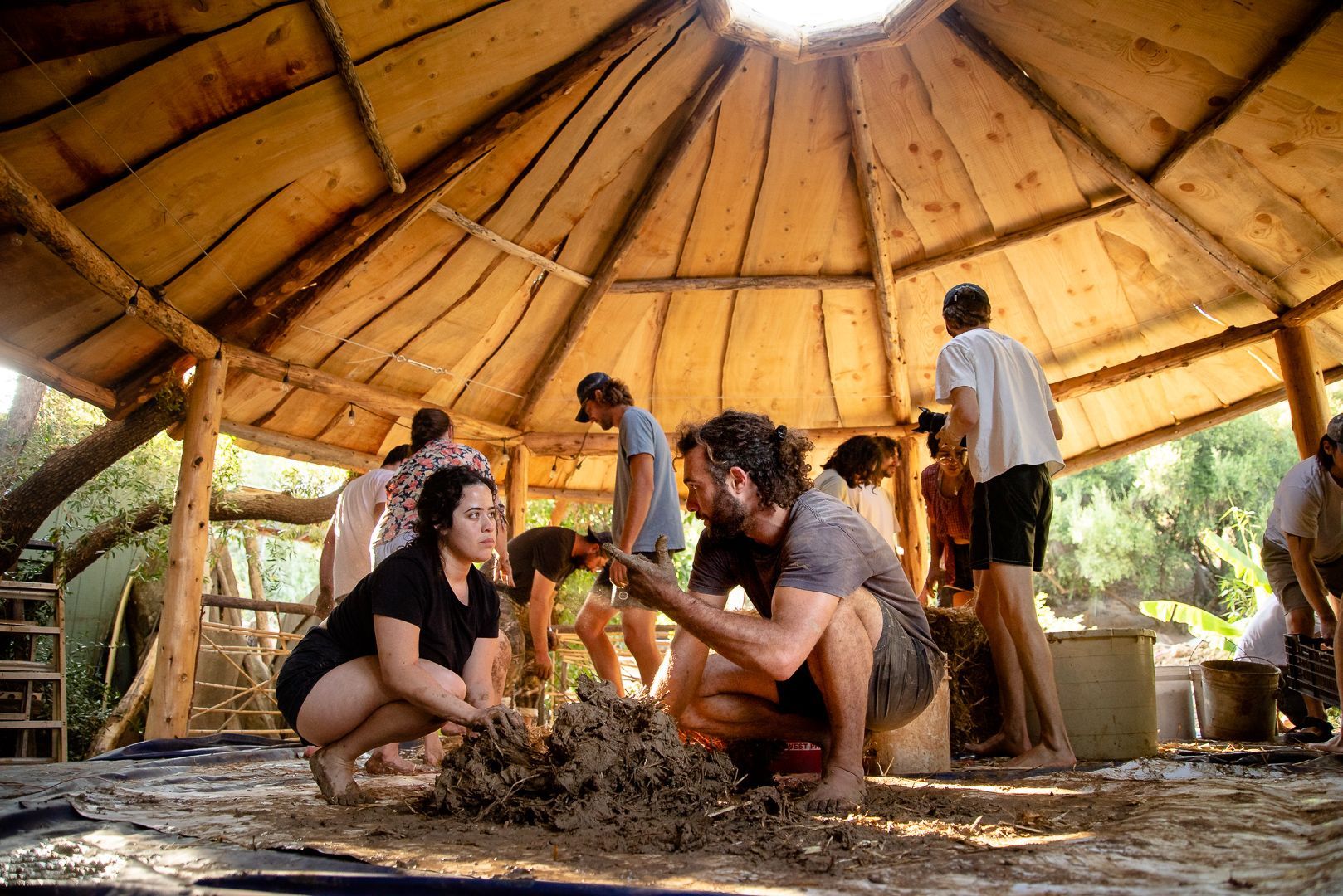 learn to work with cob (clay, sand, and natural fiber), tree trunks and branches, stone, and found materials from the surrounding community...