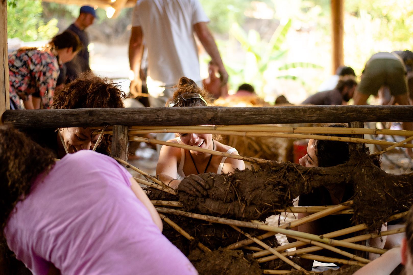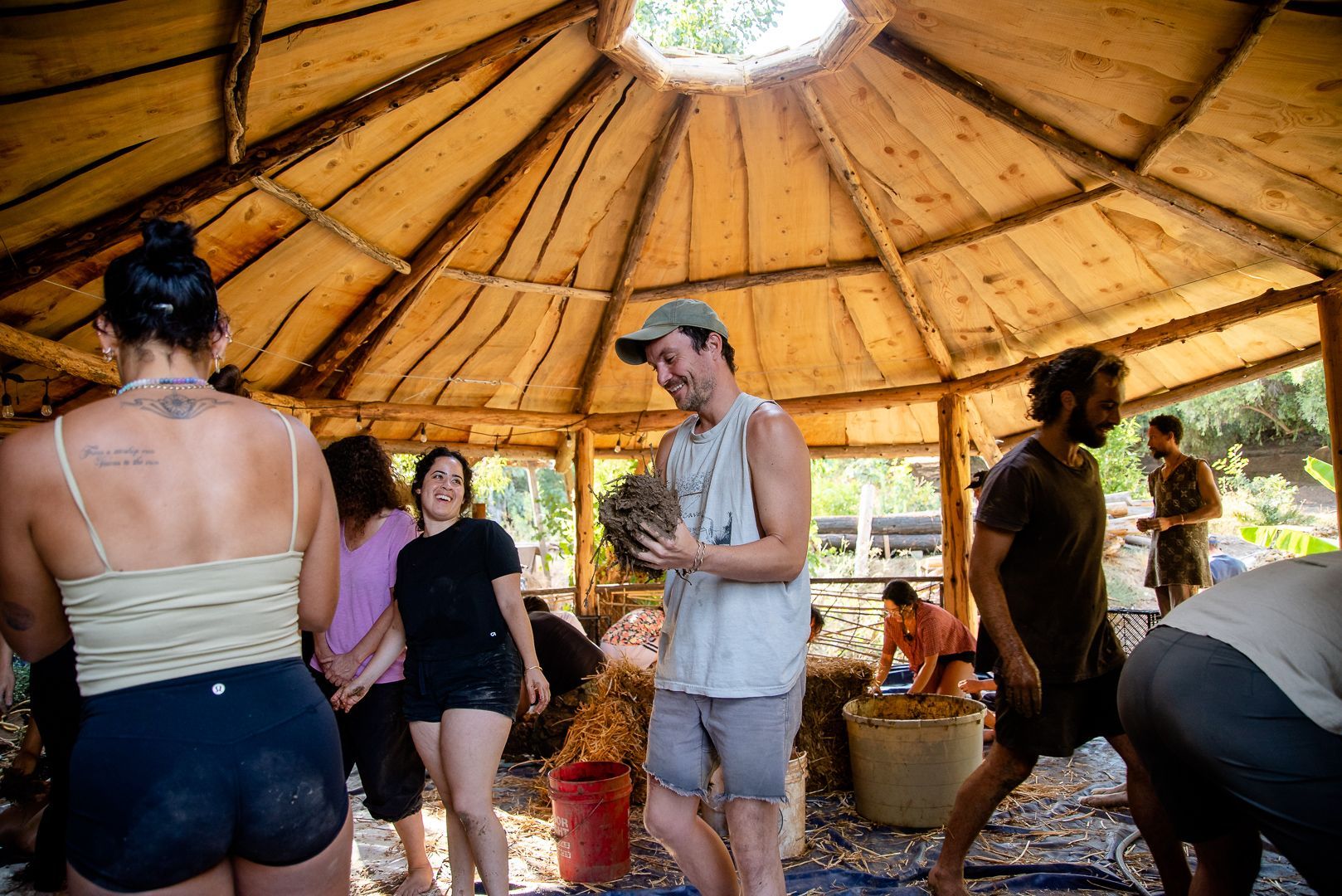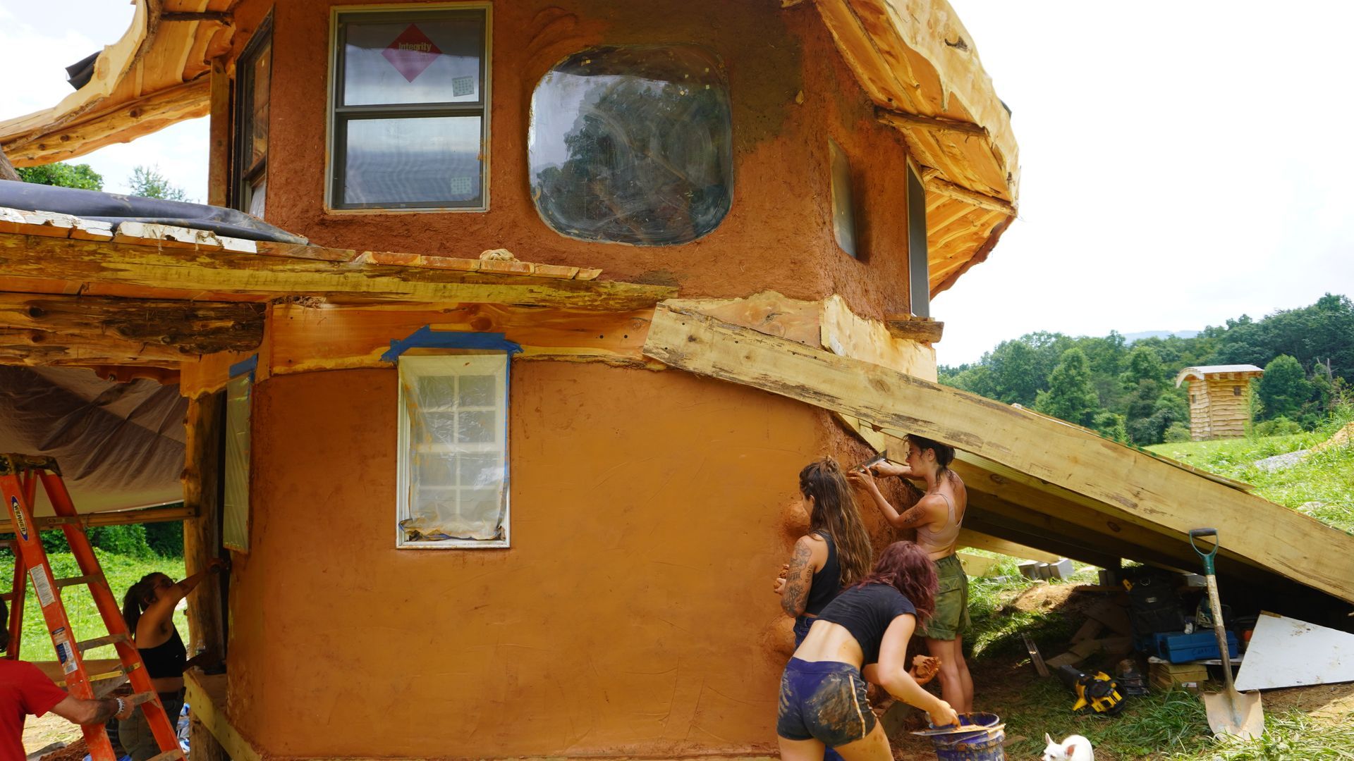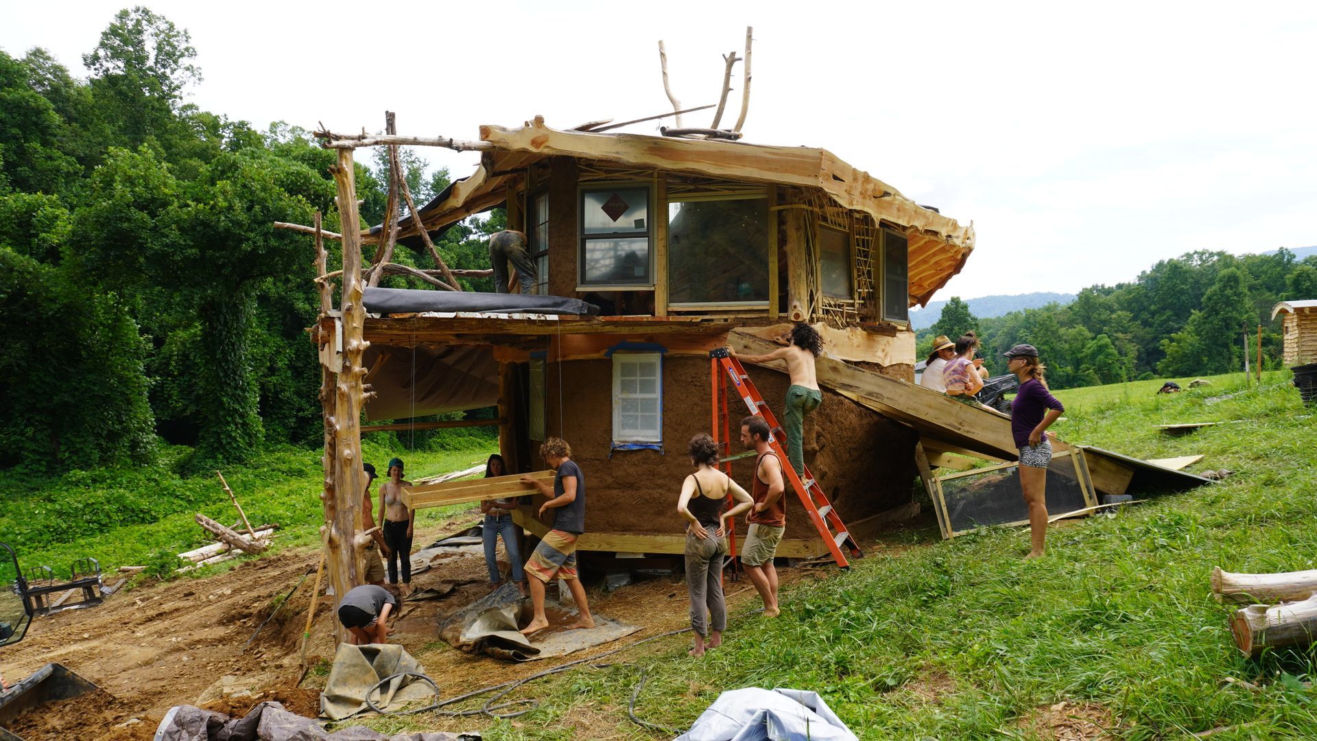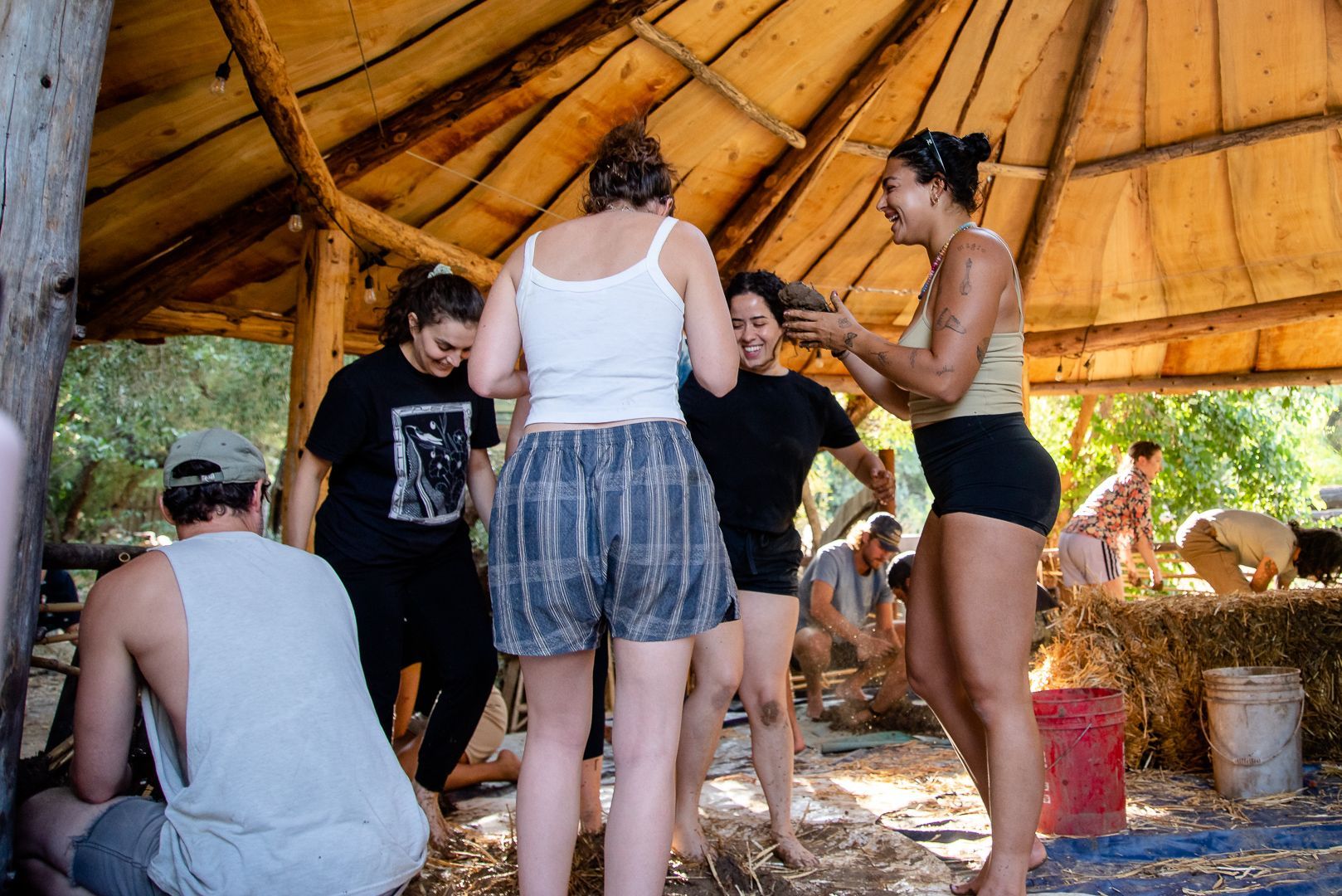 learn to work with cob (clay, sand, and natural fiber), tree trunks and branches, stone, and found materials from the surrounding community...