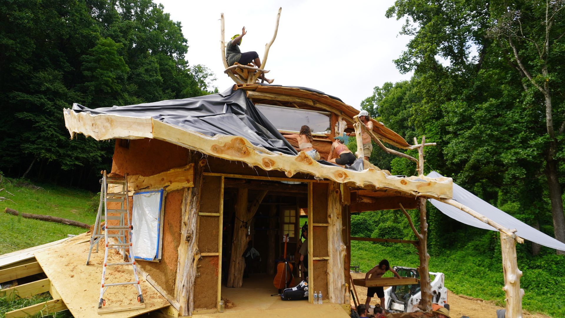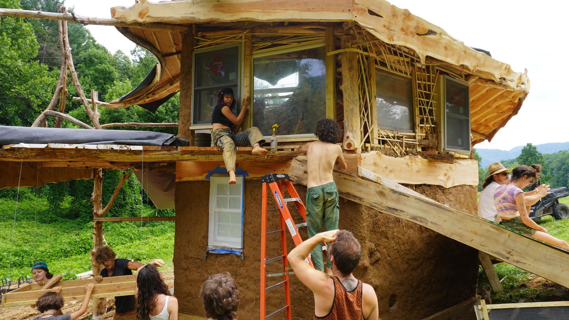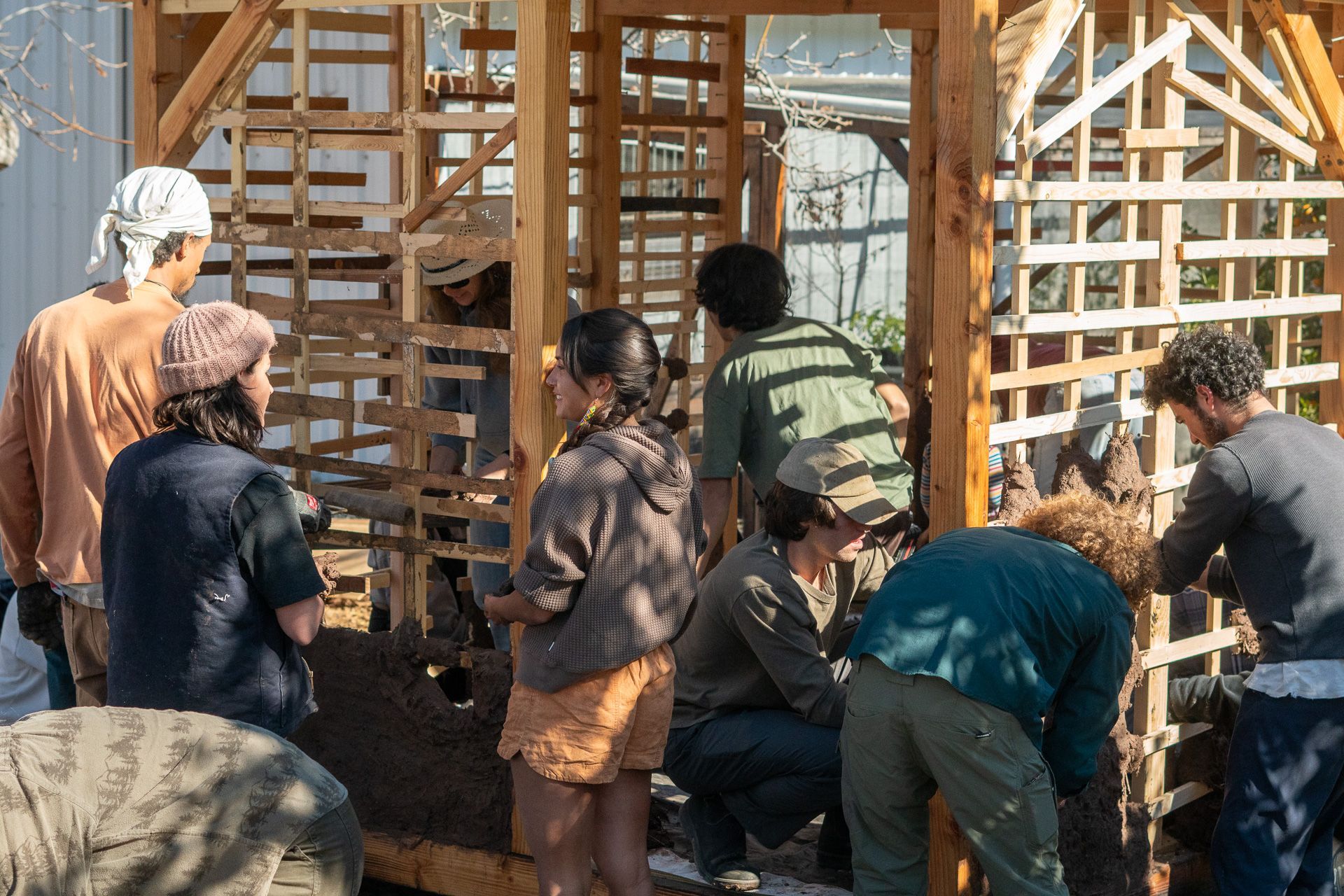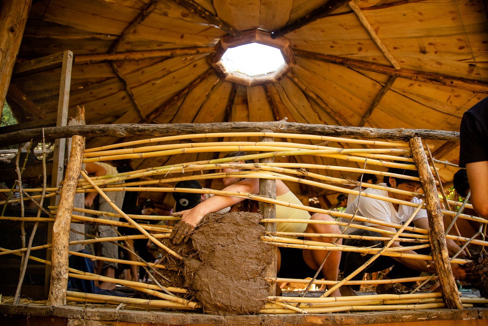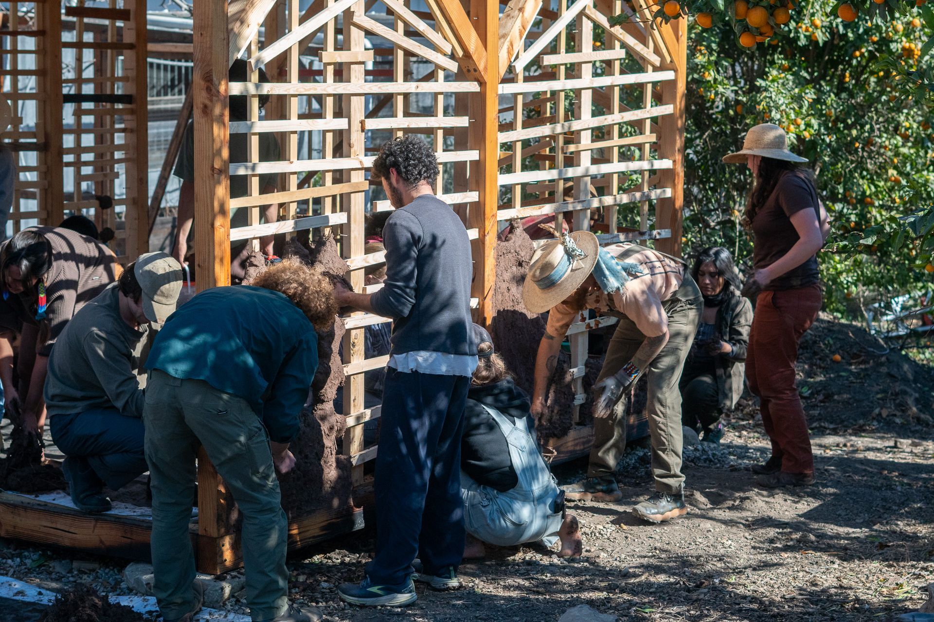 learn to work with cob (clay, sand, and natural fiber), tree trunks and branches, stone, and found materials from the surrounding community...