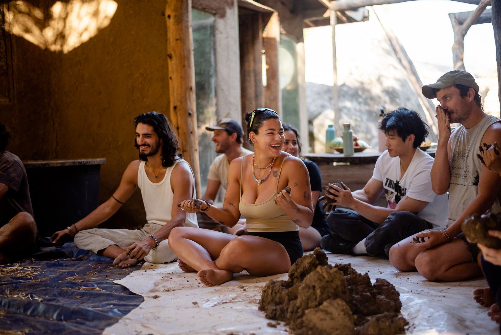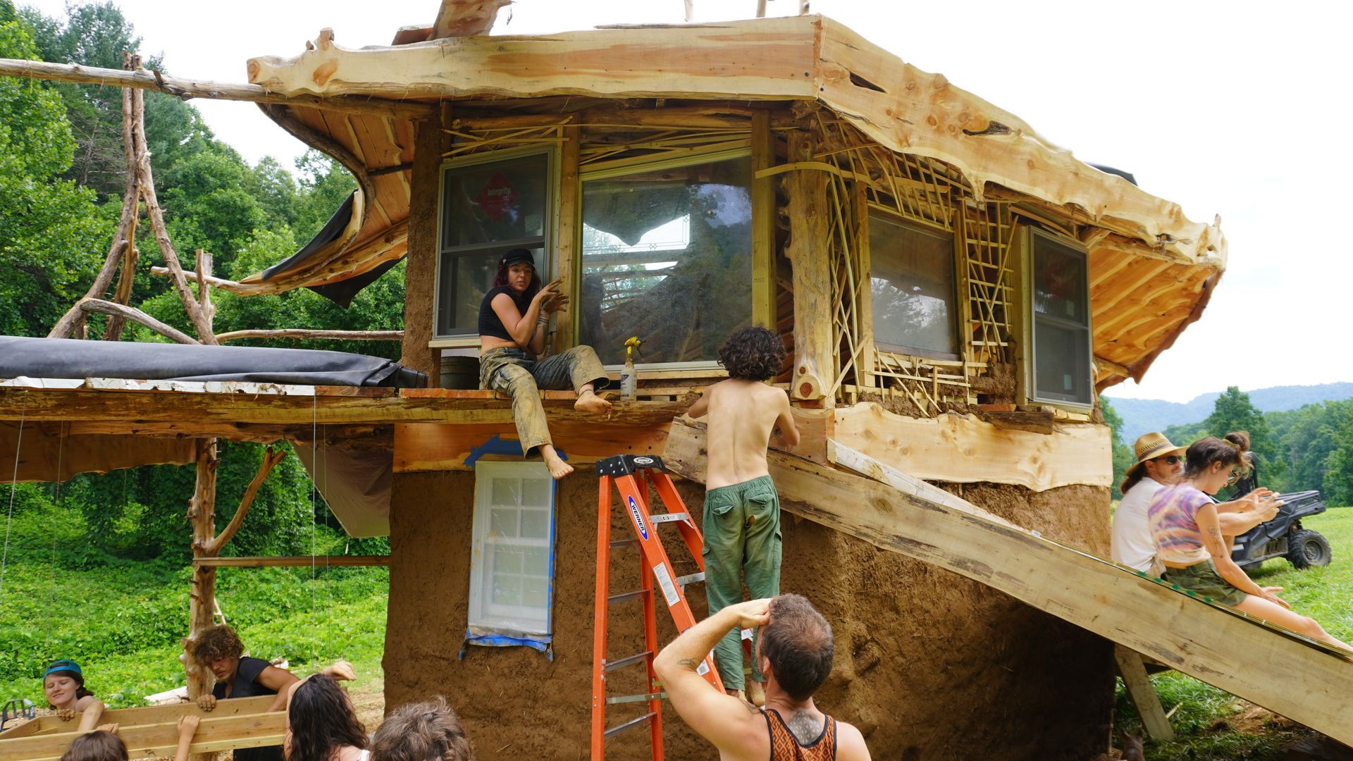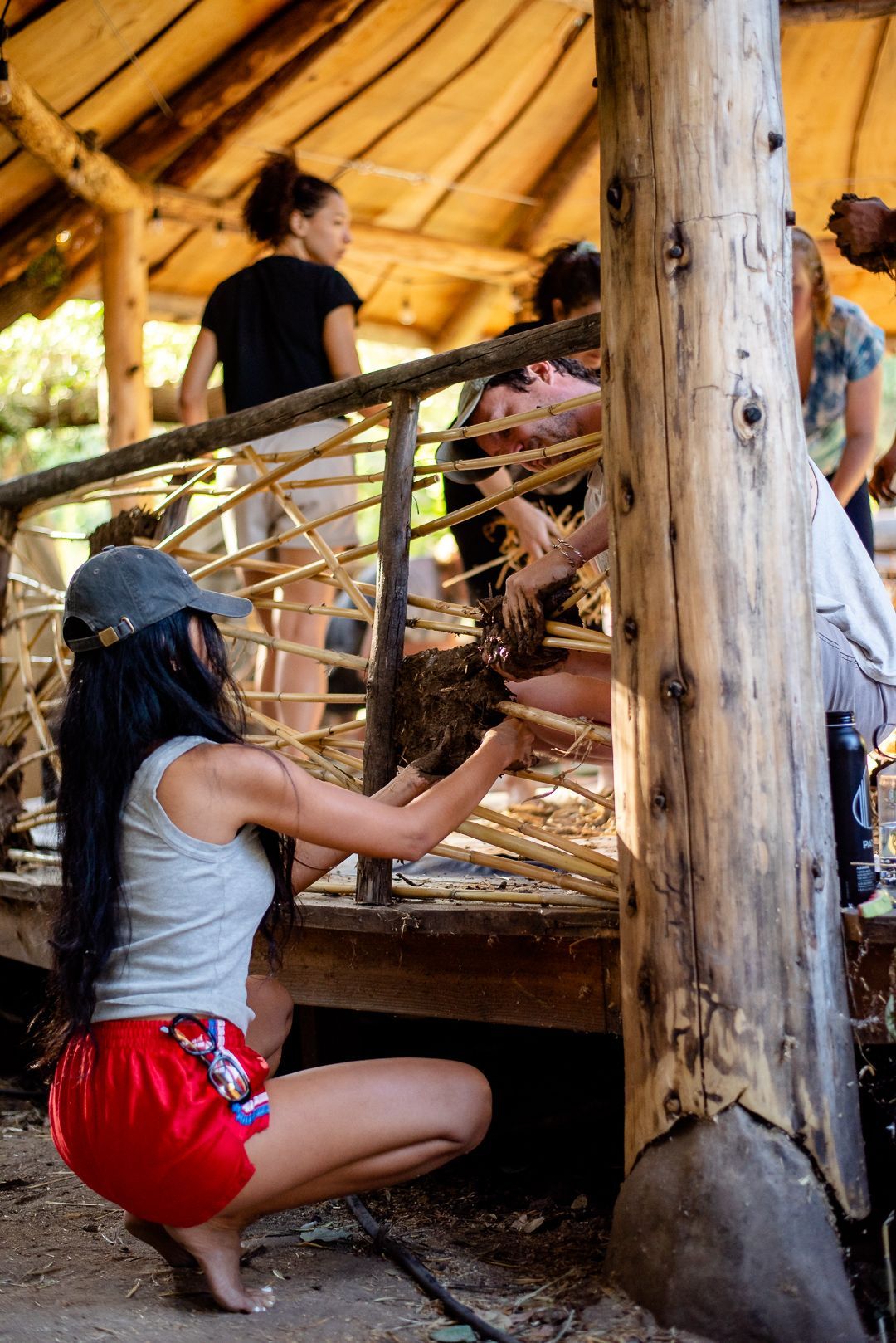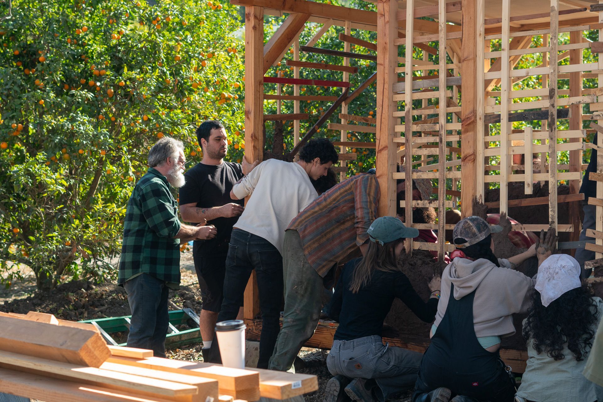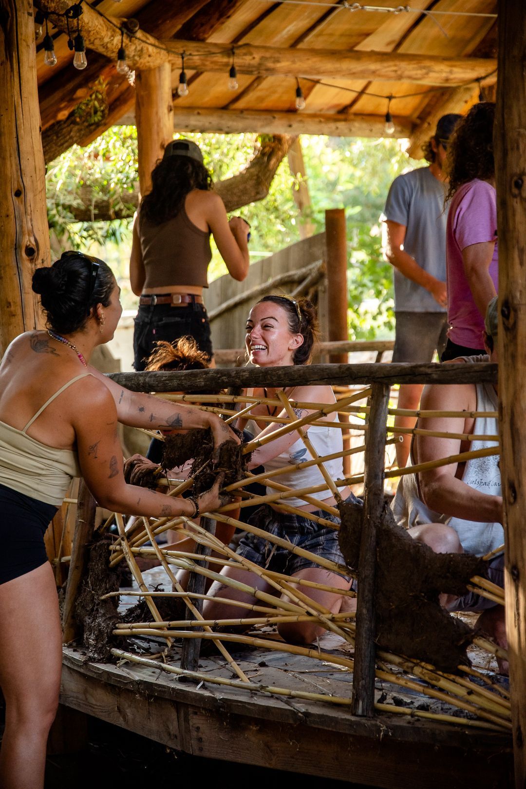learn to work with cob (clay, sand, and natural fiber), tree trunks and branches, stone, and found materials from the surrounding community...
